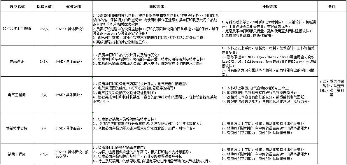 在创新中寻求发展,在发展中持续创新,未来沂人智造将充分利用服务型智造等先进制造的手段和经验,积极开拓增材制造创新应用,为客户提供更广泛的产品技术服务及更高效的整体解决方案,不断完善、坚韧砺行,力争成为行业内市场机会的发现者、应用技术的先行者和协同创新服务的践行者。现招聘以下人员: