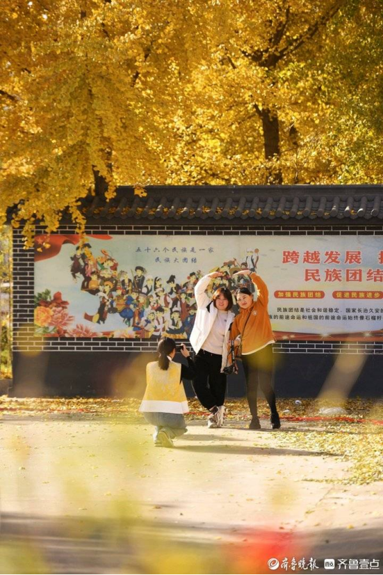 初冬时节,银杏之乡临沂市郯城县,马头镇马东村农家花园银杏林一片金黄,和古色古香的建筑相映成趣,吸引众多游人前来观赏如画秋景。
