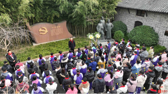 12月12日,马头镇中心小学师生在郯城革命斗争史纪念馆悼念南京大屠杀遇难同胞(无人机照片)。