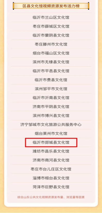 一年来,郯城县文化馆积极开展文化馆数字文化平台建设工作,在文旅郯城公众号发布各类文化服务信息236条,在文旅郯城微视频公众号发布文旅服务视频55条,105条郯城文旅信息内容被山东公共文化云采用,56条郯城文旅信息内容被山东公共文化云官方人民号采用,制作广场舞视频19个被学习强国平台采用,制作省级第六批传承人申报片8个,制作临沂市第七批市级非物质文化遗产代表性项目申报片6个,制作郯城文旅宣传片22个,102条郯城文旅信息内容被山东省数字文化大平台采用。在新华社、《人民日报》、央视、齐鲁网、临报融媒等主流媒体共发布文旅宣传信息62条。郯城县文化馆在山东公共文化云2023年热力榜单中有5项内容荣登热力榜单。苏天同志因工作成绩突出,被中共郯城县委宣传部评为“十佳新闻工作者”,被中共临沂市委宣传部表彰为“学习强国”优秀供稿员。共积累各类文化资源视频、图片等数化字资料4.7T。