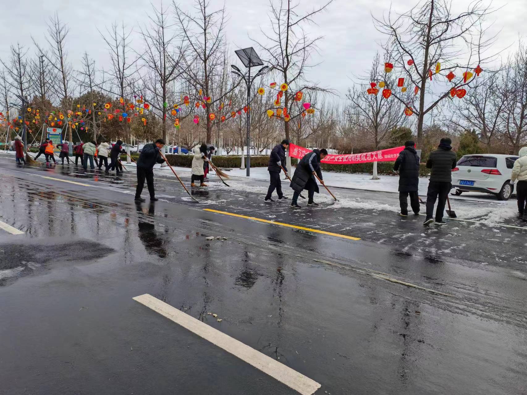 郯城经济开发区进一步诠释“为企业办好事,让企业好办事”宗旨,连续两天的降雪,为企业和群众的出行带来诸多不便,为方便安全出行,郯城经济开发区党工委、管委会第一时间行动起来,组织全体干部职工及志愿者投入到扫雪除冰活动中,全力以赴保障道路安全畅通。