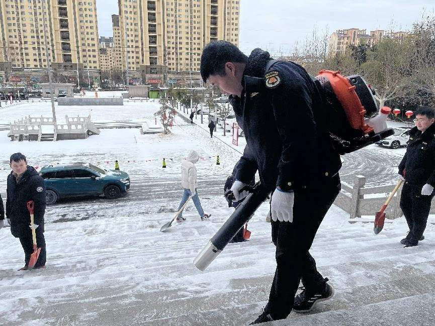 凛冽的寒风中,民兵们不畏严寒,士气高昂,分工协作,浴“雪”奋战。大家拿起鼓风机、铁锹和扫帚等工具,铲的铲、扫的扫、吹的吹……尽管民兵队员的手被冻得通红,但手中的工具却始终没有停下,大家干得热火朝天,齐心协力打通一条条通道,他们忙碌的身影成为茫茫雪景中一道亮丽的风景线。