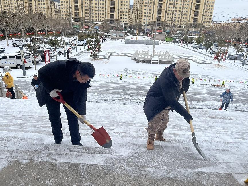 风雪无情人有情,街道民兵用自己的责任和担当,践行着人民军队为人民的服务宗旨,用实际行动践行初心使命,让军旗在铲雪除冰一线高高飘扬。