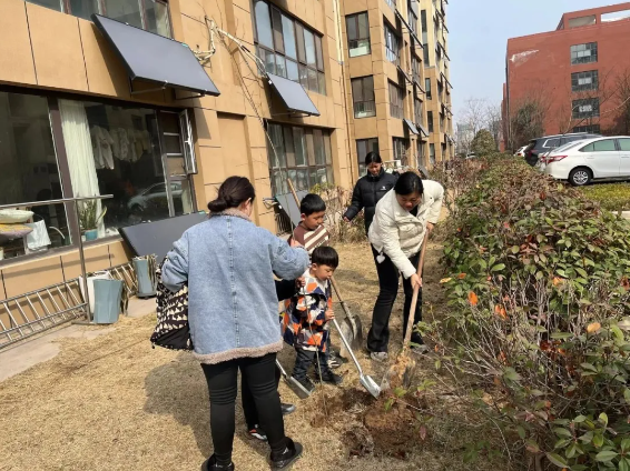 植树现场,居民朋友们激情饱满、斗志昂扬,带着小铁锹、水壶、扛起小树苗,拿着工具来到指定种植区。有的小朋友扶苗,有的填土,有的浇水……支部工作人员与居民们一起分工明确,配合默契,忙得不亦乐乎,各个小区植树现场呈现出一片热火朝天的劳动景象。