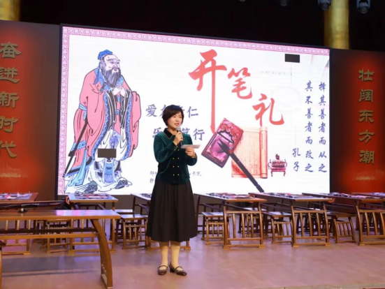 古人云:“人生聪明识字始”,开笔礼,又称破蒙礼,是中国传统文化中对少儿开始识字习礼的一种启蒙教育形式。它标志着孩子们将正式步入知识的殿堂,开启人生的求学之路。通过一系列庄重的仪式,沃盥礼—正衣冠—朱砂启智—开笔习字—击鼓明志—吟诵经典—习礼拜师—感恩父母,让孩子们感受中华文化的博大精深,明白学习的重要性,同时也寄托了我们对孩子们未来的美好祝愿。