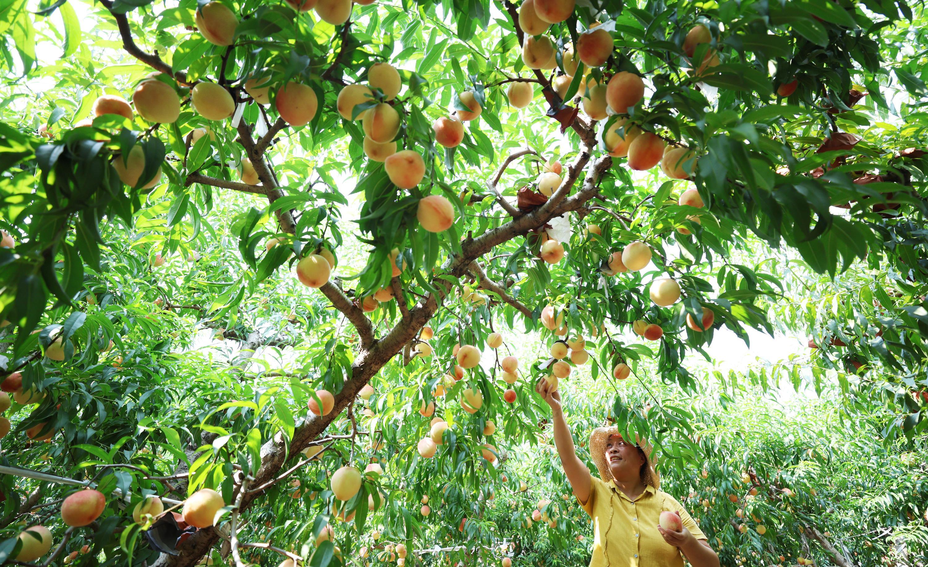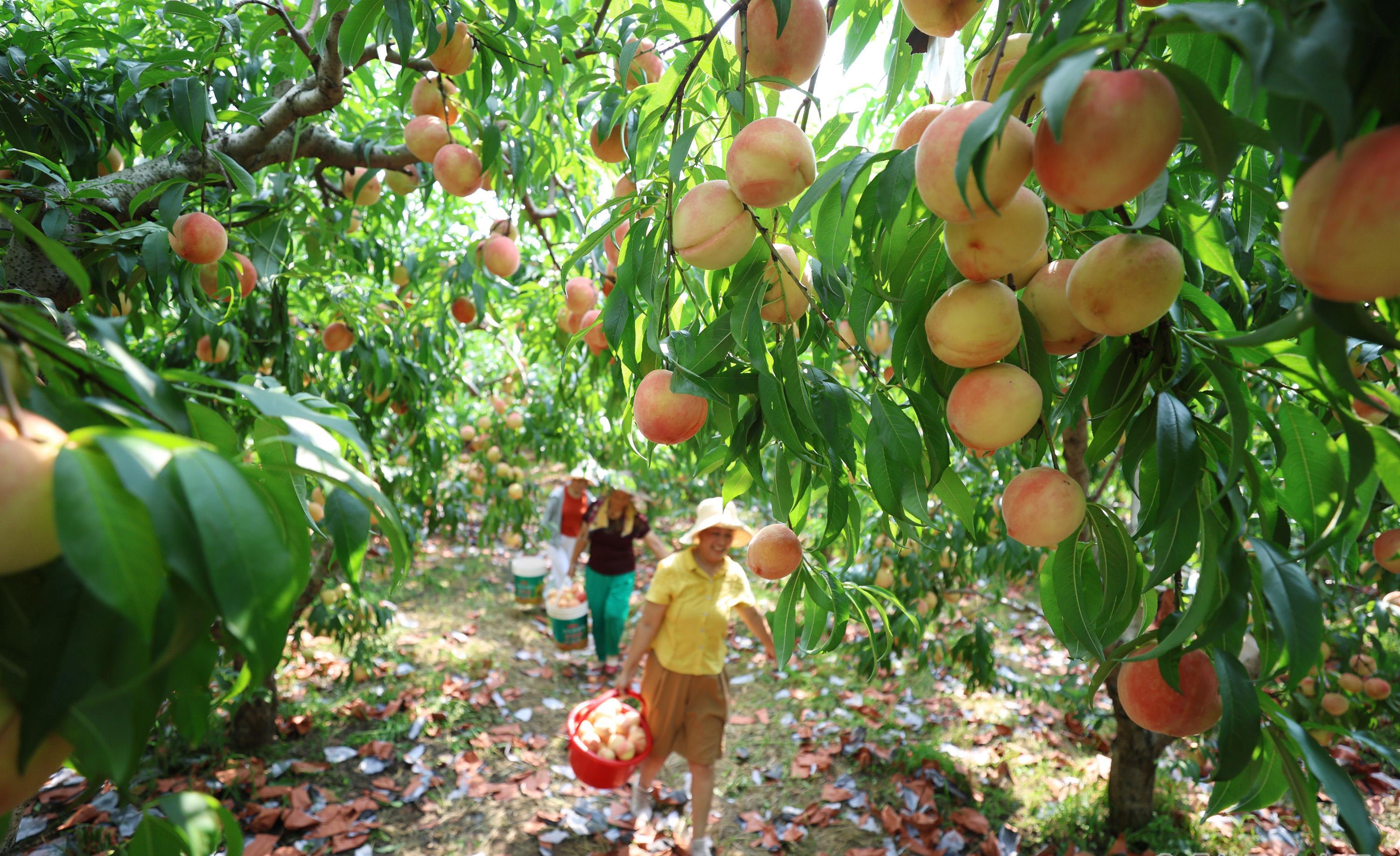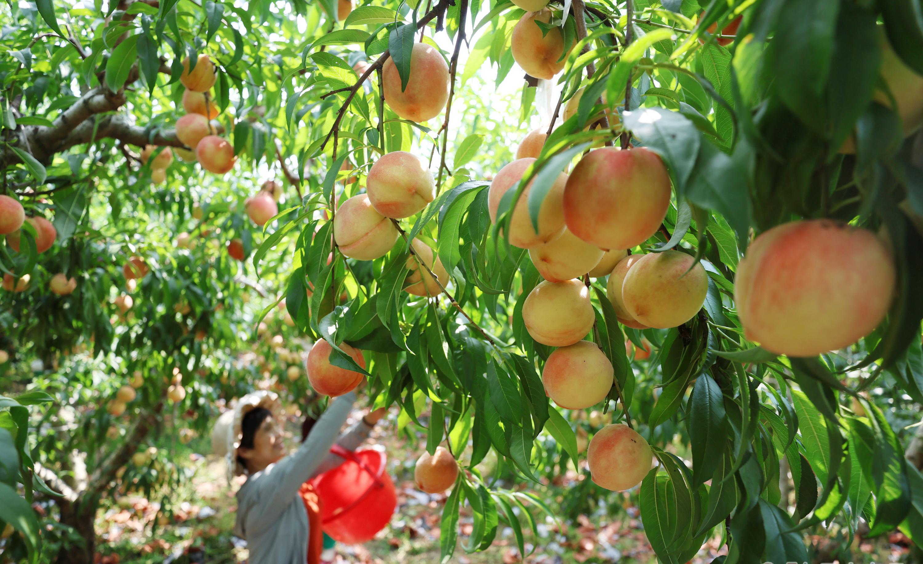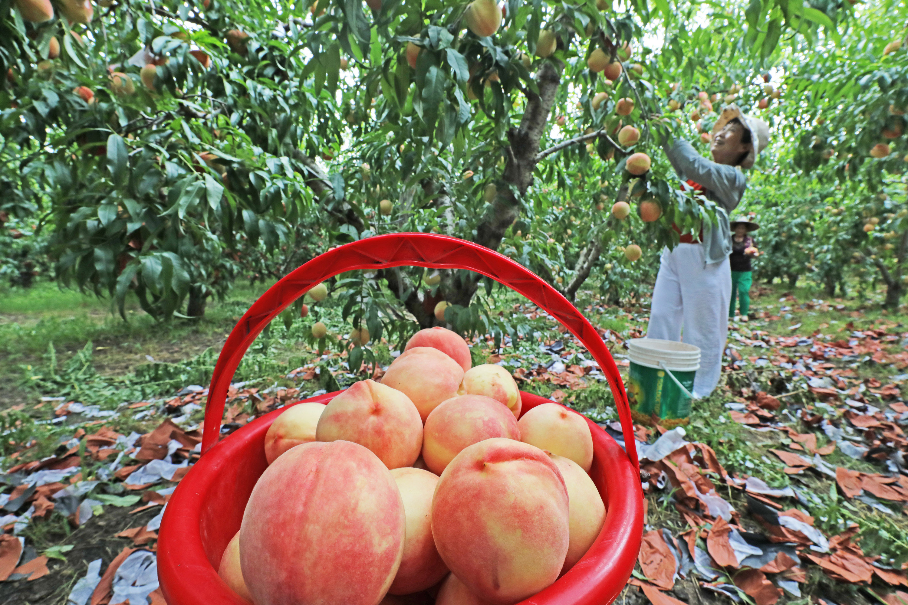 时下,山东省临沂市郯城县郯城街道港口村秋桃喜获丰收,村民及时采摘销往各地市场。