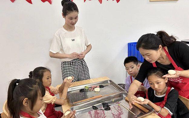 在老师的指导下,孩子们拿起面团,发挥自己的想象力和创造力。有的孩子将面团揉成各种形状,有的则用小刀在面团上刻出精美的图案,现场充满了欢声笑语,每个人都沉浸在制作面食的乐趣中。