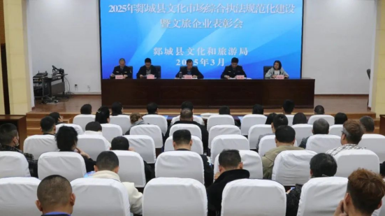 2024年郯城县文化市场综合执法大队全体执法人员上下一心,团结一致,艰苦奋斗,在市县各主管部门的正确领导及全县各文旅企业的积极配合下,郯城县文化市场综合执法工作取得了显著提升,综合执法效能和文旅市场和谐满意度大幅跃升,迈上了新的大台阶。为表扬先进,充分激发文旅市场新活力新动能,圆满完成好“郯城县文化市场综合执法规范化建设年”工作任务,持续优化提升营商环境,将郯城文旅产业高质量发展推向更高水平,近期,郯城县文化和旅游局邀请全县文旅企业代表,组织召开了郯城县文化市场综合执法规范化建设暨文旅企业表扬会,郯城县文化和旅游局党组书记、局长石瑞强参加会议并作总结讲话。