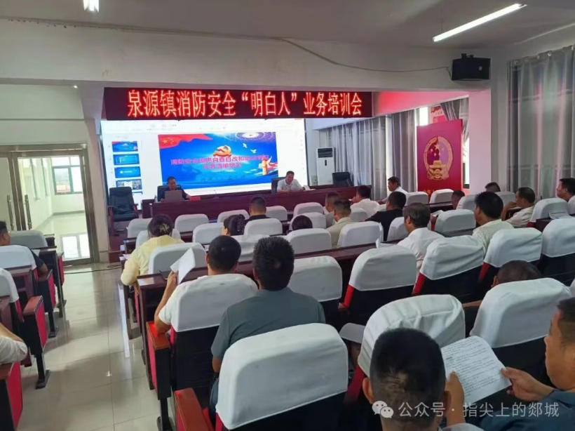 8月27日,泉源镇举办消防安全“明白人”业务培训会。会上,参会人员观看《“三合一”场所消防安全警示教育片》,县消防救援大队工作人员结合典型火灾案例,剖析“九小场所”、企业、村居常见消防隐患,讲解消防通道畅通、电气线路铺设等关键内容。下一步,泉源镇将坚持“预防为主,防消结合”原则,结合消防安全排查整治行动,加大隐患排查与宣传力度,保障辖区居民生命财产安全。