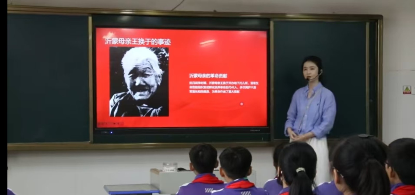 课堂上,老师讲述“水乳交融、生死与共”的沂蒙故事,阐释其中蕴含的“党群一心、军民情深、艰苦奋斗、无私奉献”的深刻内涵,同学们踊跃发言,分享对沂蒙精神的理解,探讨如何在日常学习生活中践行吃苦耐劳、团结互助的品质。