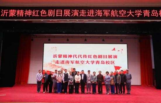 11月8日,海军航空大学青岛校区礼堂内气氛庄重热烈,“沂蒙精神代代传” 红色剧目展演在此温情上演。沂蒙老区临沂市郯城县小戏小剧创演工作室带来的《那双血染的军鞋》《水草饭团》《沂蒙小米红》三部精品剧目,以质朴生动的艺术表达,为全体受训文职人员献上了一场浸润心灵的红色文化盛宴,让 “党群同心、军民情深、水乳交融、生死与共” 的沂蒙精神在军营落地生根。