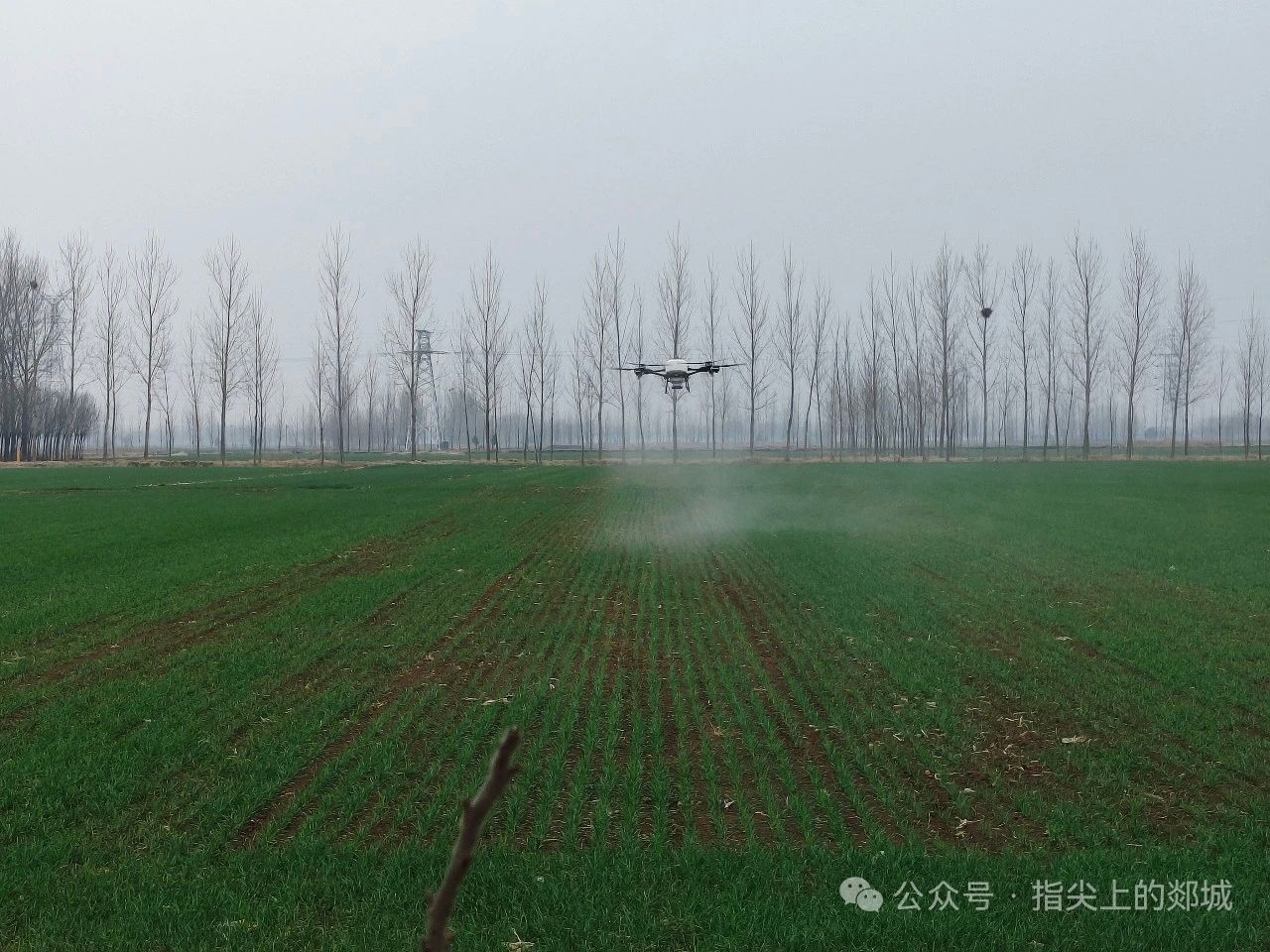 在郯城县理想家庭农场,植保无人机穿梭作业,精准喷施药剂与叶面肥,为麦田送去“营养套餐”。当地抓住降雨有利时机,雨前通过无人机追施尿素与复合肥,实现水肥与降雨高效衔接。眼下,随着气温回升,镇农技小分队深入田间地头,现场指导农户因苗施策、分类管理。