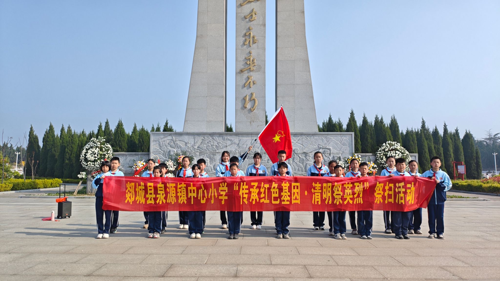 为缅怀革命先烈、弘扬爱国精神,4月1日,郯城县泉源镇中心小学组织少先队员代表,前往郯城县烈士陵园开展清明节祭扫活动 。