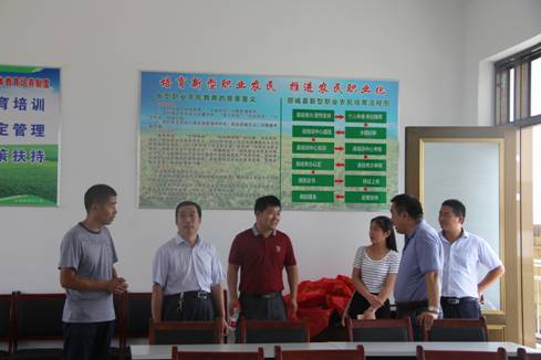 6月20日,吉林省农广校副校长苏洪波、体系建设科科长董宏伟在临沂市农广校校长孙志智的陪同下到郯城县考察交流新型职业农民培育工作,我县人大常委会副主任马学准、农业局局长莫峰、副局长王燕、农广校校长陈洪文陪同。