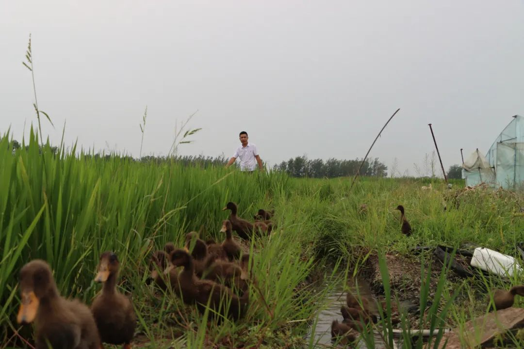 “今年,我在稻田地里搞了一个小实验,放养了500只小鸭子。前期雏鸭在稻田地里行走,不仅可以吃掉杂草绿萍;而且把稻田地里的虫子也吃掉了,起到了灭草净地、消灭病虫害的作用。这样养鸭子的稻田地就不用使用除草剂,这样既减少了种植的成本,提高了收入,还提升了大米的品质。”