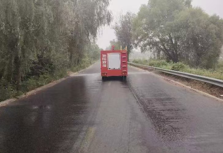 花园镇对白马河滨河路、马涝线等国省县乡道路进行洒水清理