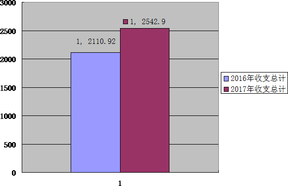 2017年度收、支总计2,542.90万元。与2016年相比,收、支总计2110.92各增加431.98万元,增长20.46 %。主要是增加人员经费。