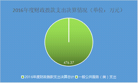 2016年度财政拨款支出决算总计476.37万元,其中:一般公共服务(类)支出476.37万元,占100%。