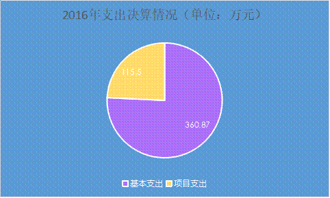 2016年度本年支出476.37万元,其中:基本支出360.87万元,占76%;项目支出115.5万元,占24%。