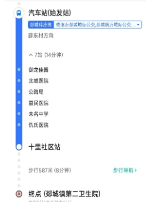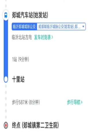 乘坐郯城临沂(东线)城际公交、郯城株柏线、郯城薛庄线、郯城立朝线、郯城陈埠线、郯城黄岭线、郯城黄山线,到达十里社区站下车,下车后步行587米到达医院。具体如下图