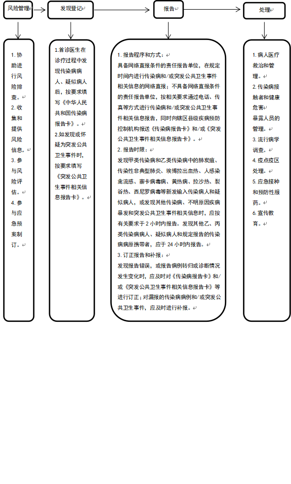 (4)传染病病种报告、报告卡填写等工作按照国家法律、法规及有关管理规范执行。