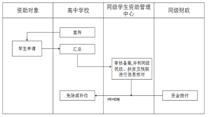 图1 普通高中家庭经济困难学生免学杂费资助流程
