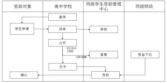 每学年开学一周内,学校应利用班会、校会等多种形式,宣传资助政策和国家助学金申请、审批、发放流程。